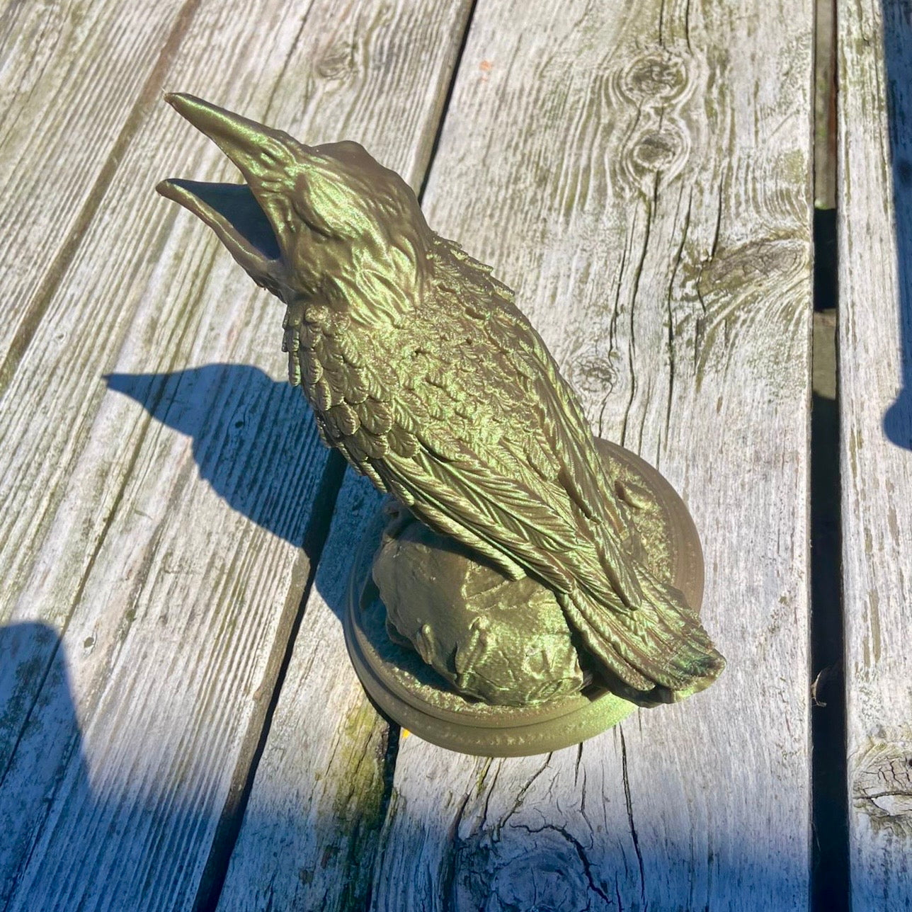 Deze raaf staat op een skull, gooi je dice in zijn snavel en deze komt er bij de skull weer uit.